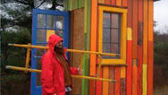 The Stowe Recreation Path has been the site of the Habitat for Artists Project (HFA), hosted by Helen Day Art Center. A simple 6'x6' shed that acts as a temporary - and very public - studio, the Habitat is the invention of Simon Draper, an artist from the Hudson Valley. Helen Day Art Center and Draper's idea attracted 15 artists to spend their creative time working in the Habitat. Together they covered 45 days and were visible to as many as 30,000 visitors.