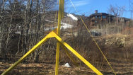 Zebrowski’s project, SURVEY, is comprised of two distinct installations - Level and Sunrise Sunset. Both installations are painted bright safety yellow and reference transits, the surveyor tools for measuring horizontal angles, and construction, alluding to the monumental development projects at Spruce Peak. Each sculpture is created as an upside down “V,” with the supporting leg on each pointing to a different cardinal direction. The yellow sculptures, sited in striking contrast to the stark winter landscape, focus the viewer’s attention on specific points in the landscape, reflect the shape of the surrounding mountains, and echo the architecture. They are beacons, they are tools to measure, they are points on a map, they are surveyors. They offer an opportunity for viewers to stop, observe, reveal, and reflect.