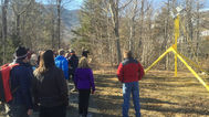 Level is installed on the southeast portion of the snowshoe trail, Spruce Loop. This installation has two pyramid shaped sculptures across the woods from one another - one pointing north, the other south. Each structure holds lasers that will point to each other, at the exact same height, creating a perfectly level horizontal laser line through the woods - a contrast of precision and organic. This light will be visible at sunset and through the night.